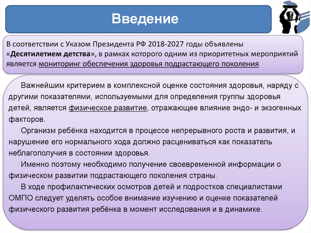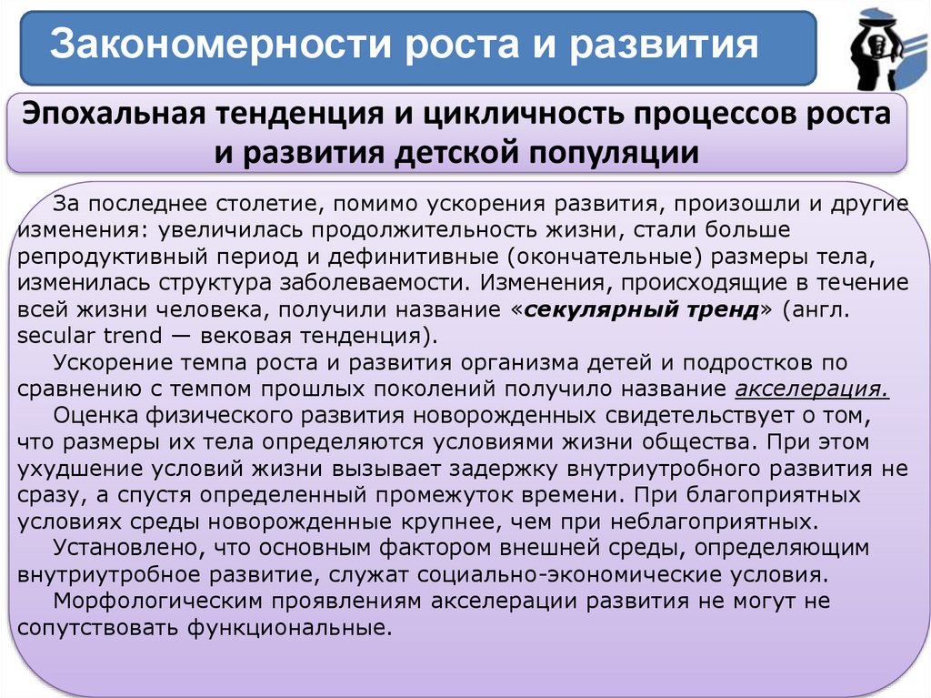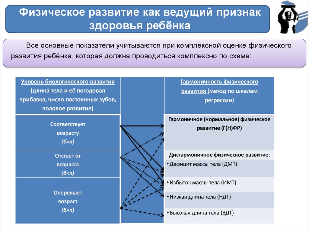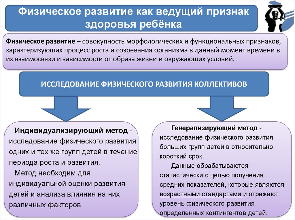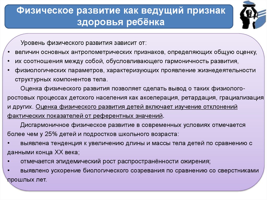 Оценка физического развития позволяет сделать вывод о таких физиологоростовых процессах детского населения как акселерация, ретардация, грациализация