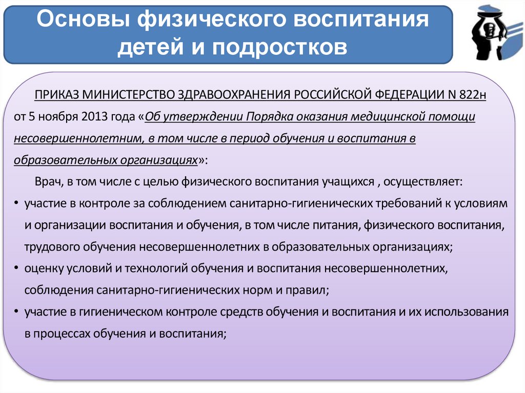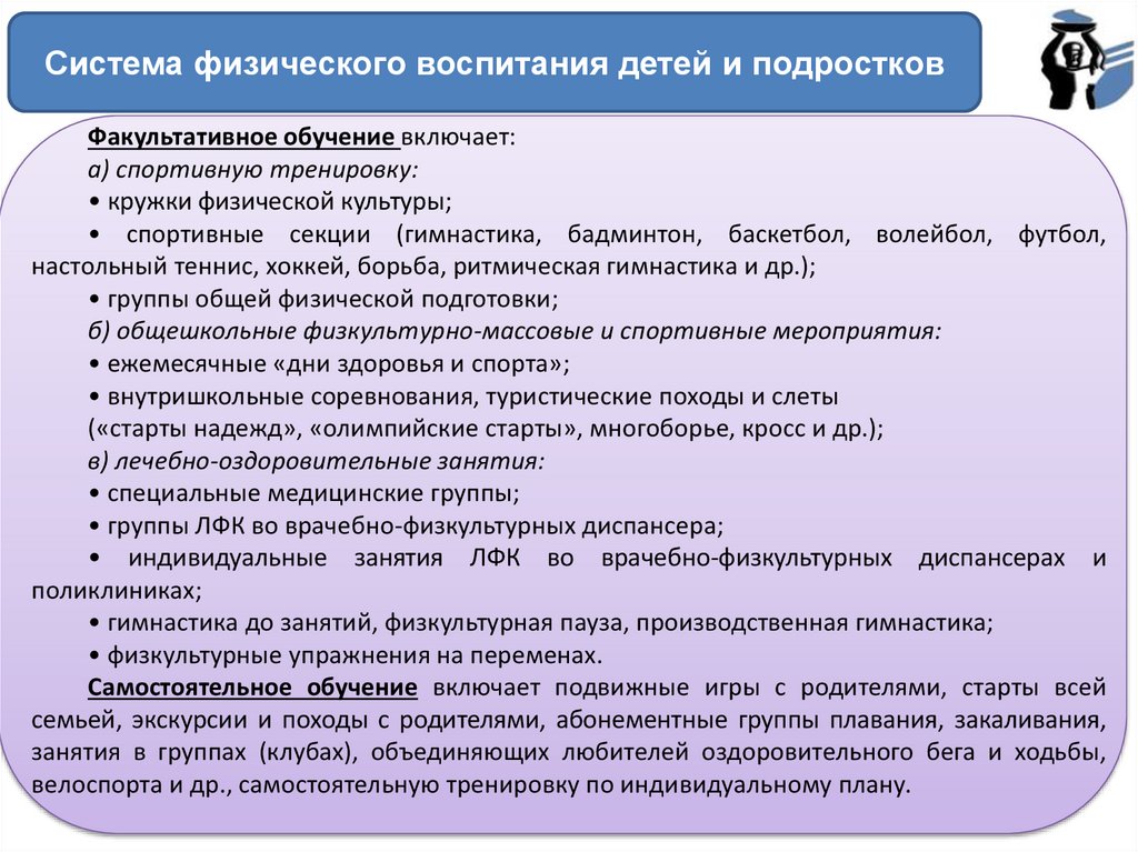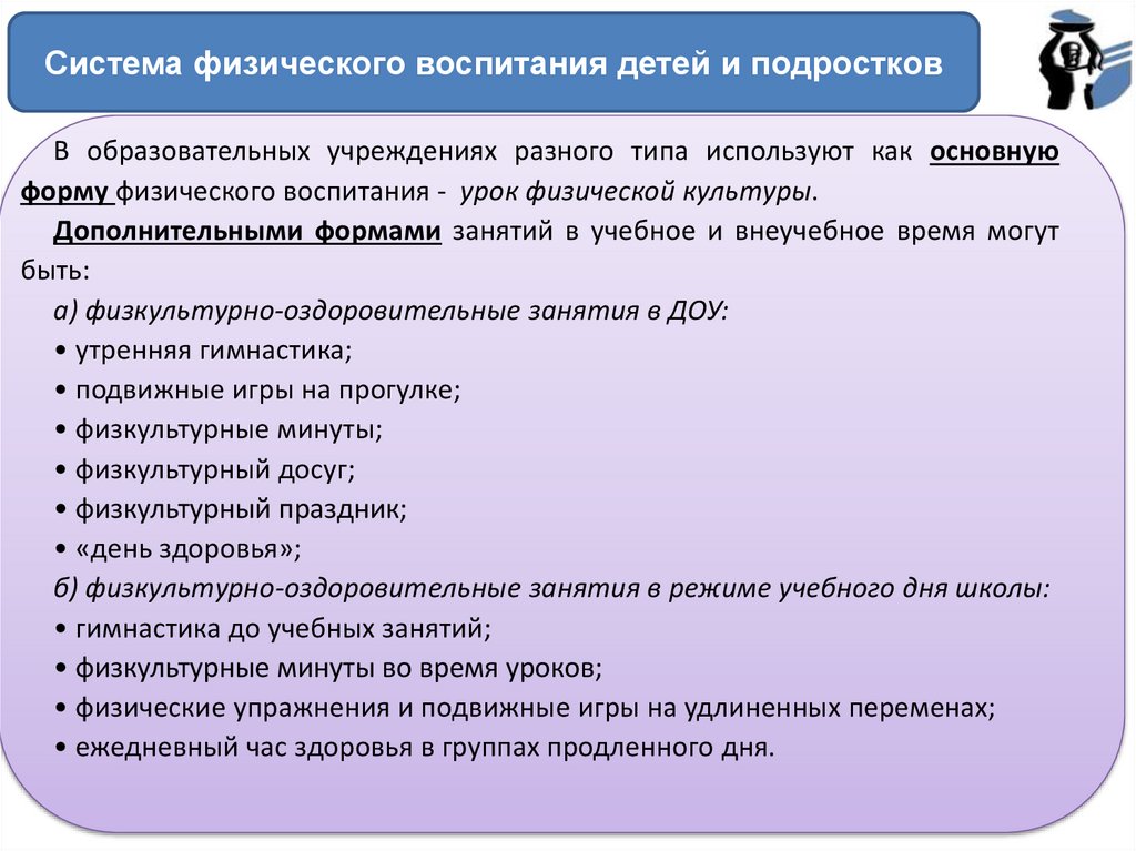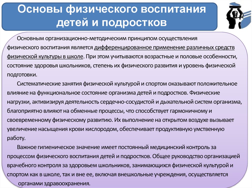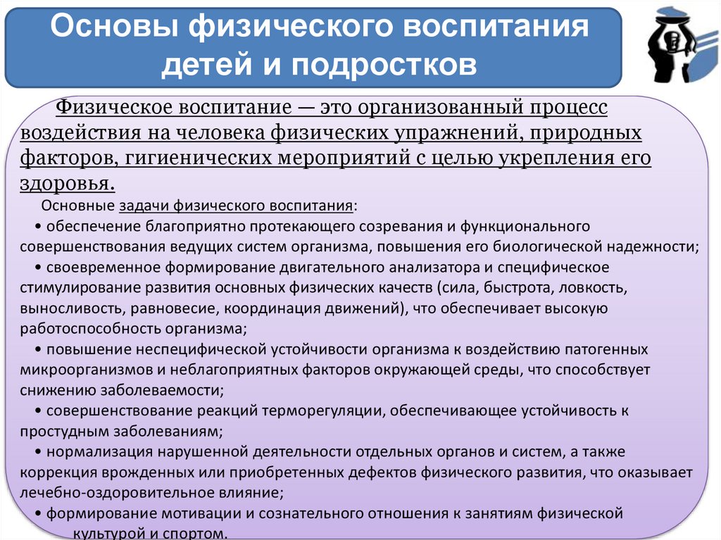 Физическое воспитание детей и подростков осуществляется в соответствии