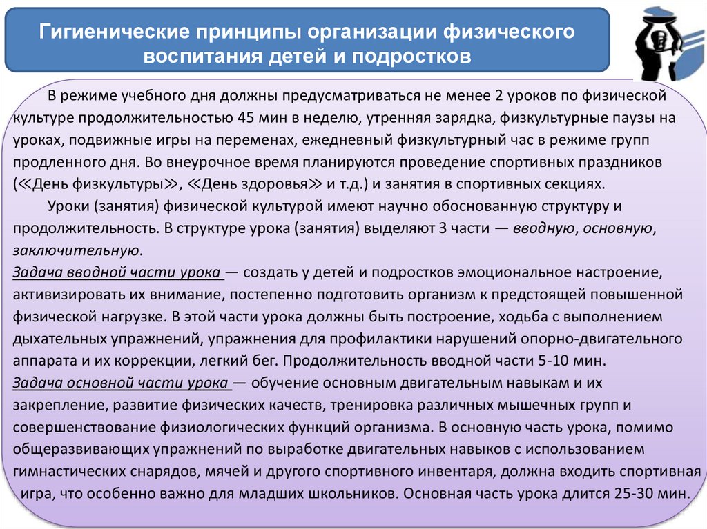 Гигиенические принципы организации физическоговоспитания детей и подростков