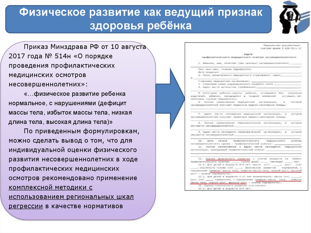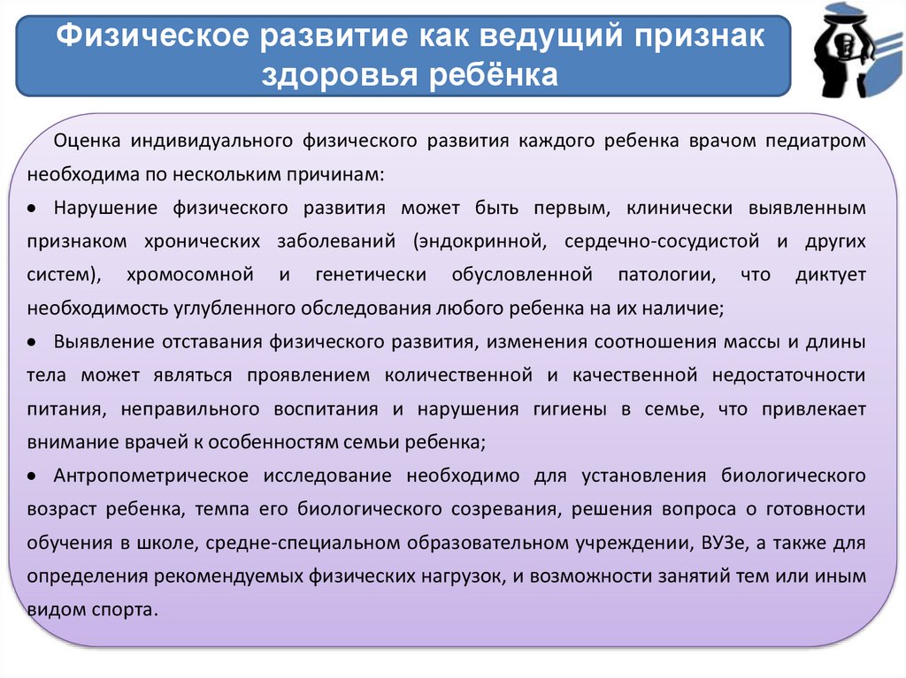 Оценка индивидуального физического развития каждого ребенка врачом педиатром