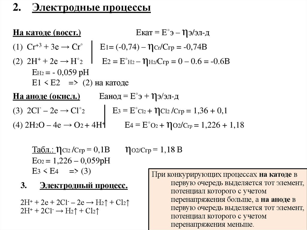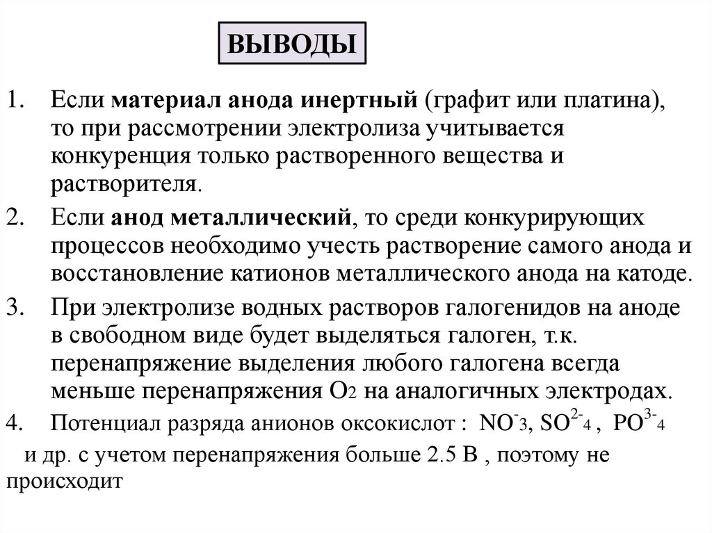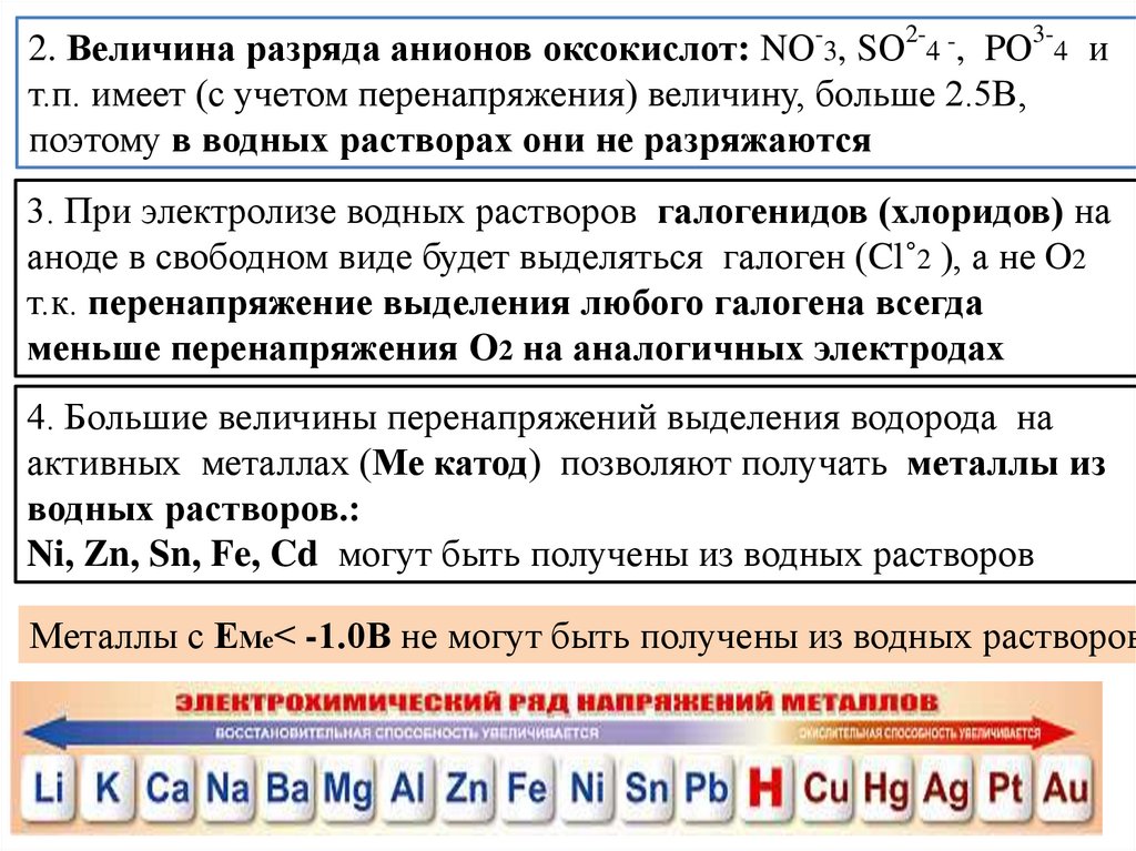 2. Величина разряда анионов оксокислот: NО-3, SО2-4 -, PО3-4 ит.п. имеет (с учетом перенапряжения) величину, больше 2.5В,