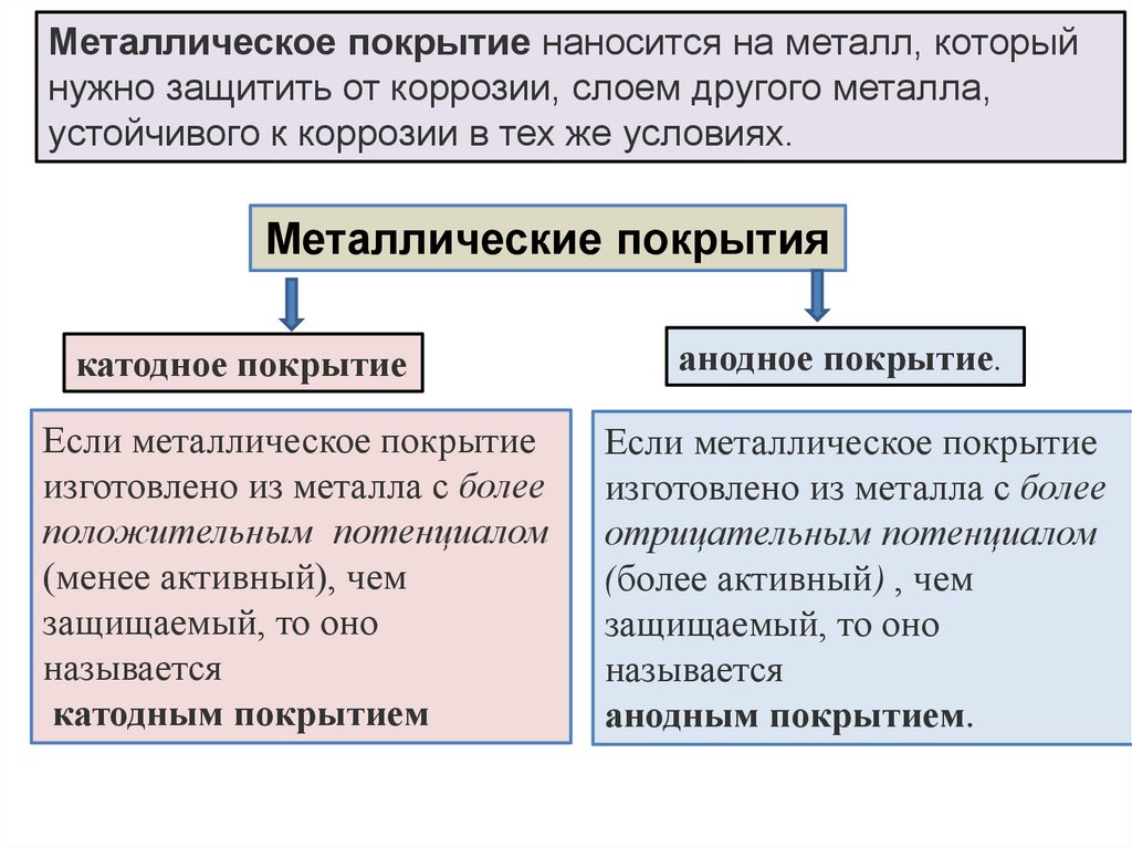 Металлическое покрытие наносится на металл, которыйнужно защитить от коррозии, слоем другого металла,