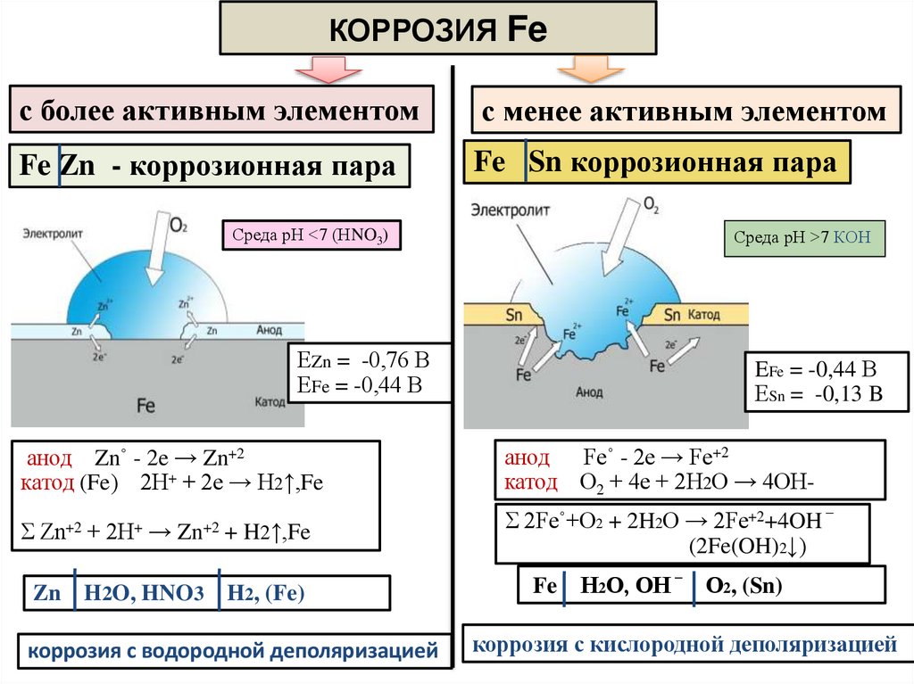 1) Электрохимическая коррозия возникает в токопроводящих средахпри наличии контакта разнородных металлов, за счет