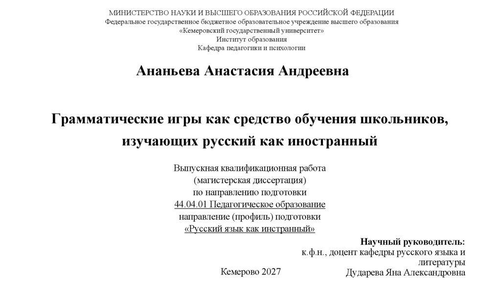 МИНИСТЕРСТВО НАУКИ И ВЫСШЕГО ОБРАЗОВАНИЯ РОССИЙСКОЙ ФЕДЕРАЦИИФедеральное государственное бюджетное образовательное учреждение высшего образования