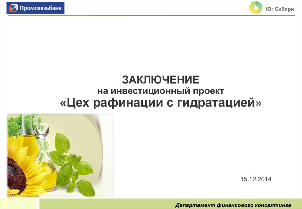 1. ЗАКЛЮЧЕНИЕ на инвестиционный проект «Цех рафинации с гидратацией»