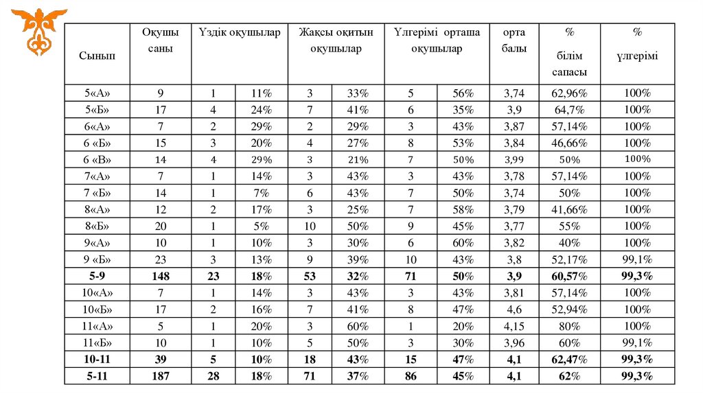 Оқу озаты - 51. Екпінділер – 103. Үлгерушілер – 133. Үлгерімі –