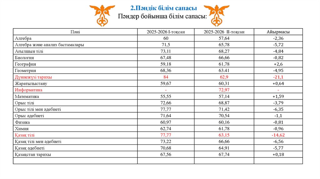 2. Мақсаты: оқушылардың үлгеріміне, сабаққа қатысуын, біліміндегі кемшіліктерін және олардың шешу жолдарына талдау жасау. Жалпы
