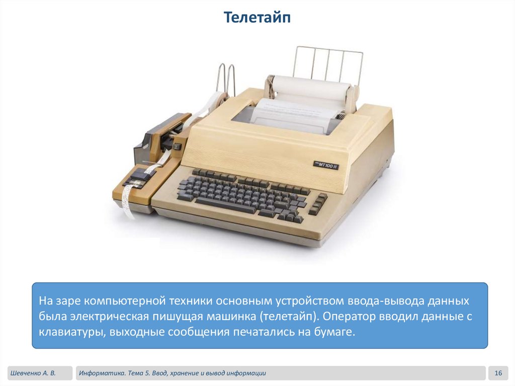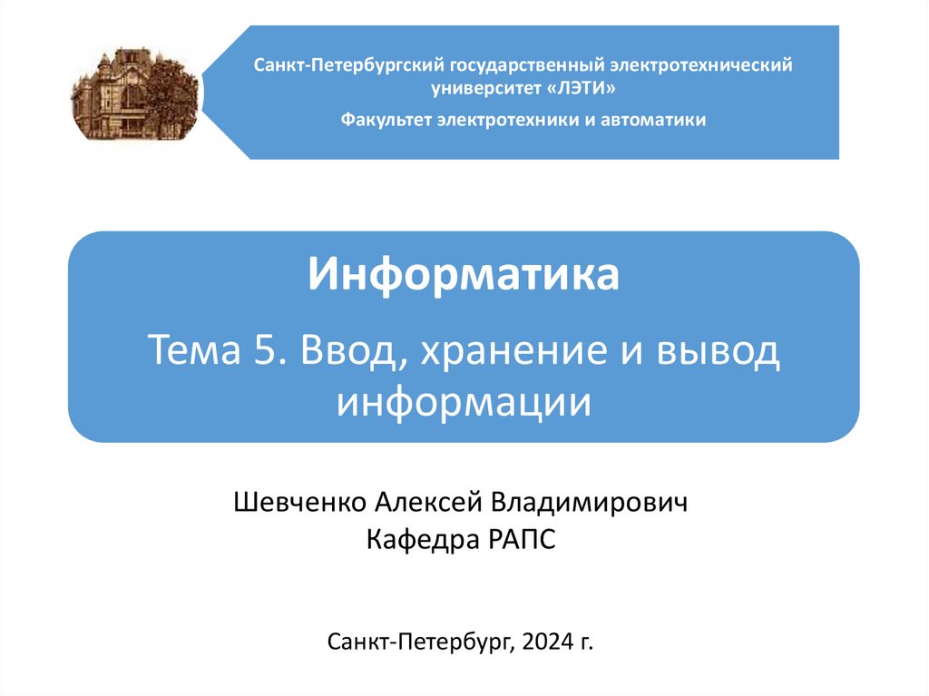 Информатика. Тема 5. Ввод, хранение и вывод информации