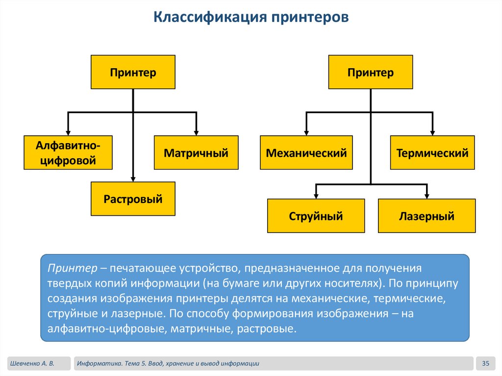 К основным характеристикам струйных и лазерных принтеров относят размер