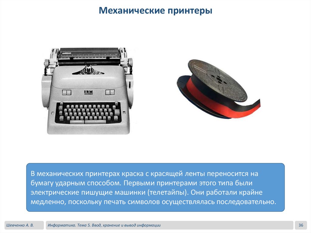 бумаге через красящую ленту, аналогичную применяемой в печатных машинках,