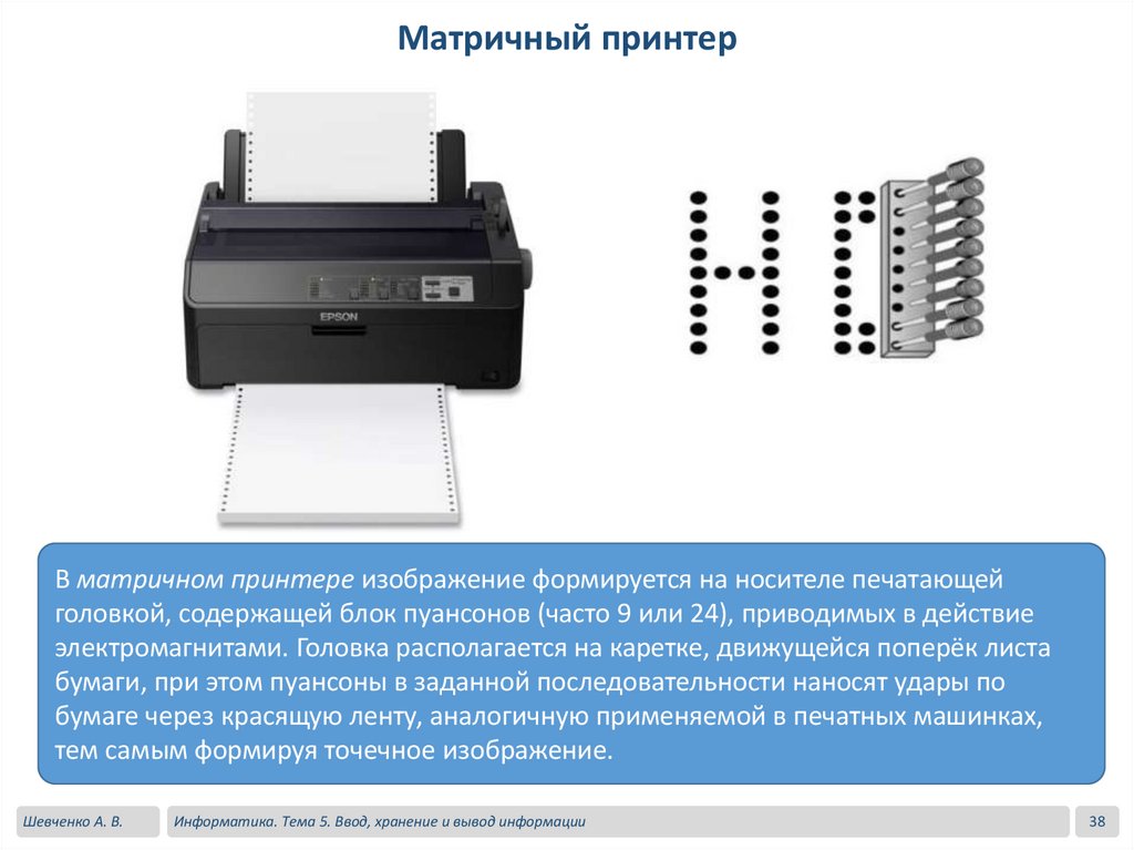 Матричный принтерВ матричном принтере изображение формируется на носителе печатающей