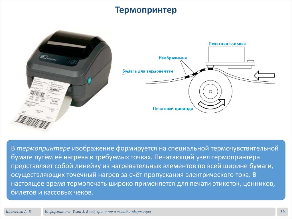 ТермопринтерВ термопринтере изображение формируется на специальной термочувствительной