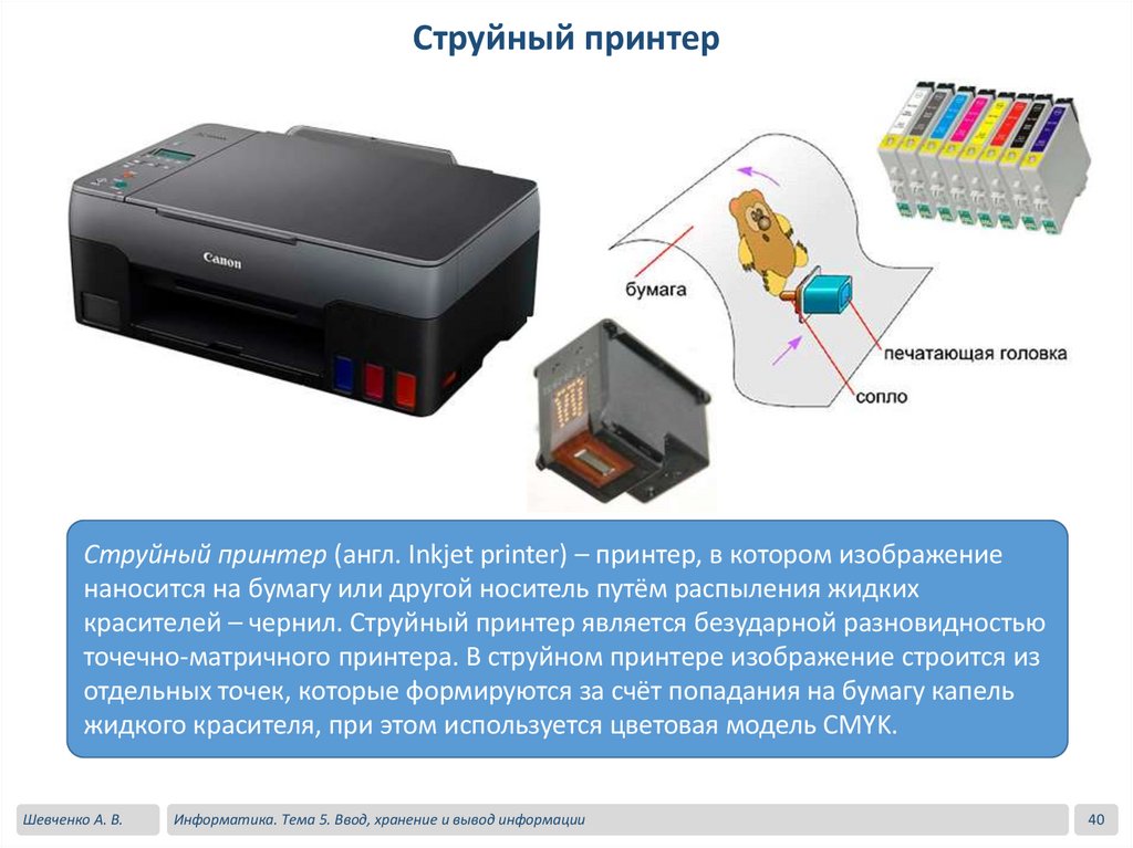 Струйный принтерСтруйный принтер (англ. Inkjet printer) – принтер, в котором изображение