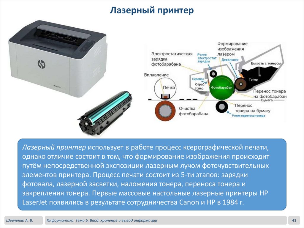 Лазерный принтерЛазерный принтер использует в работе процесс ксерографической печати,