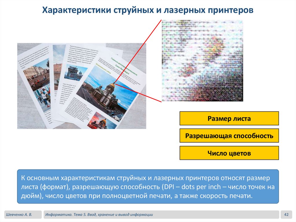 дюйм), число цветов при полноцветной печати, а также скорость печати.