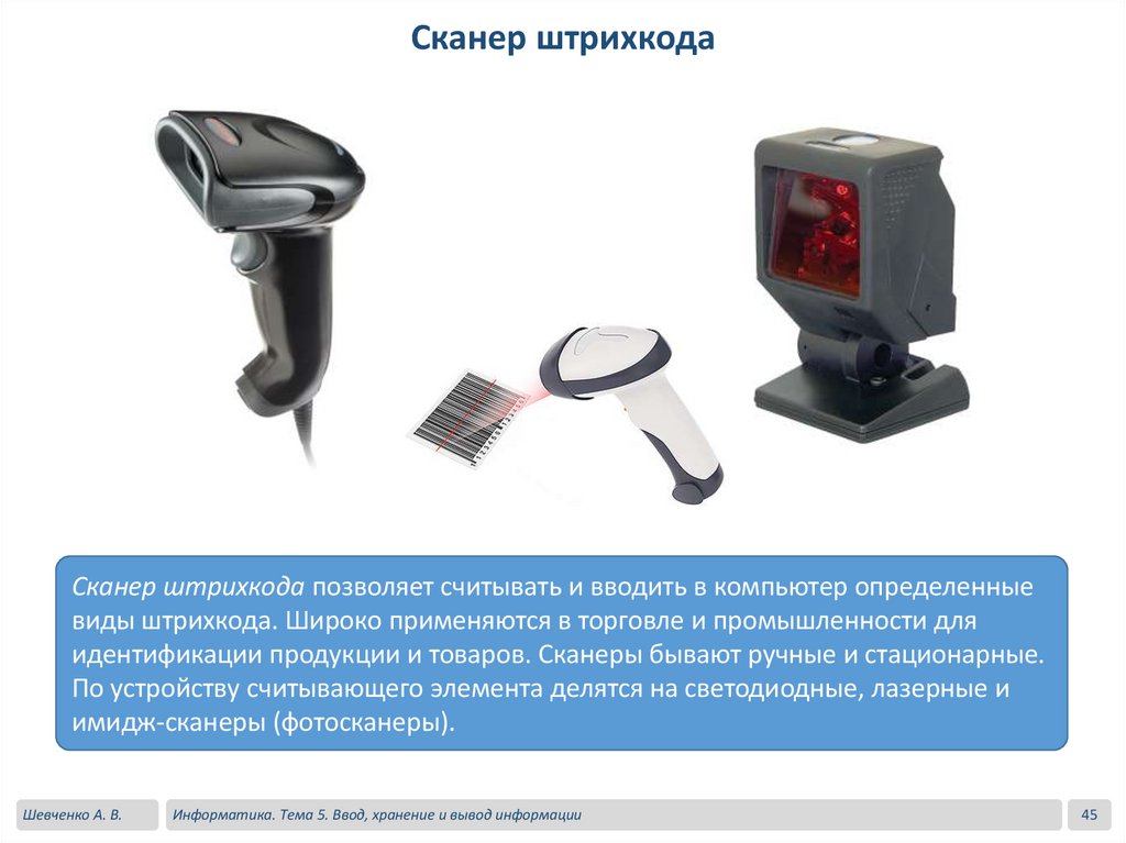 идентификации продукции и товаров. Сканеры бывают ручные и стационарные.