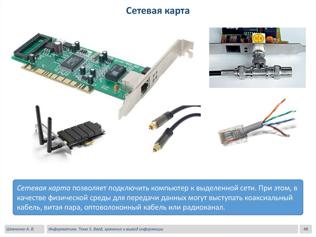 Сетевая картаСетевая карта позволяет подключить компьютер к выделенной сети. При этом, в