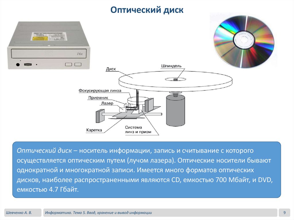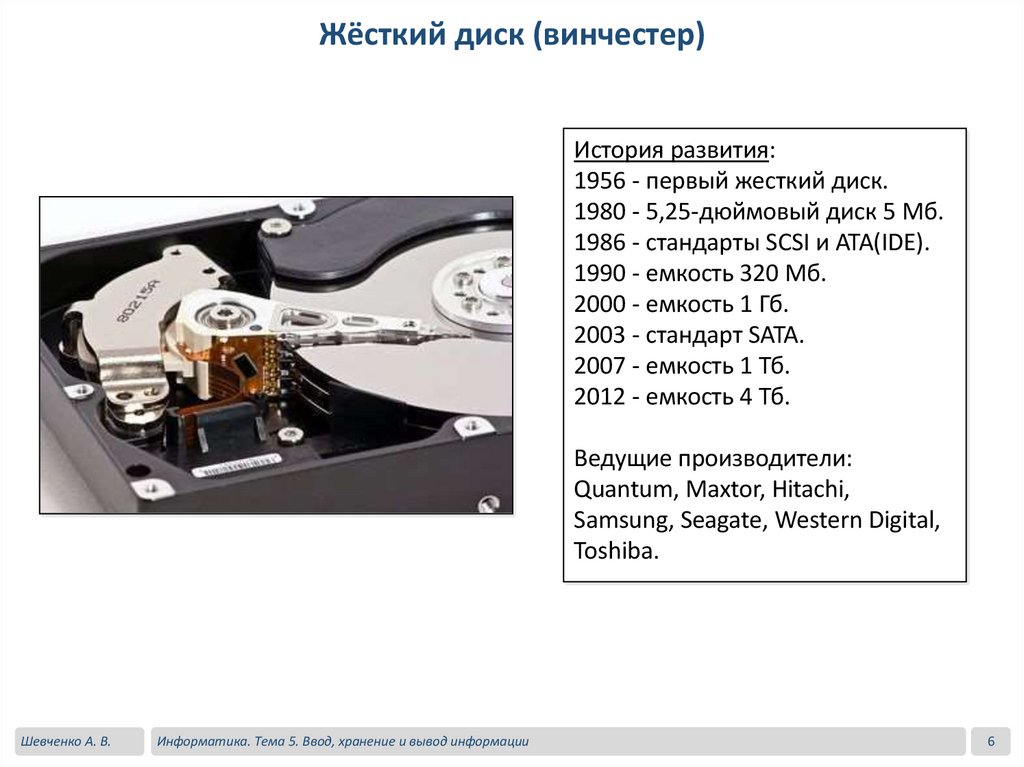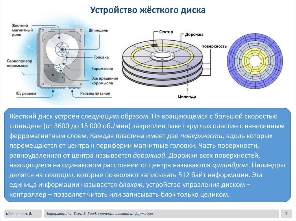 Жесткий диск устроен следующим образом. На вращающемся с большой скоростью