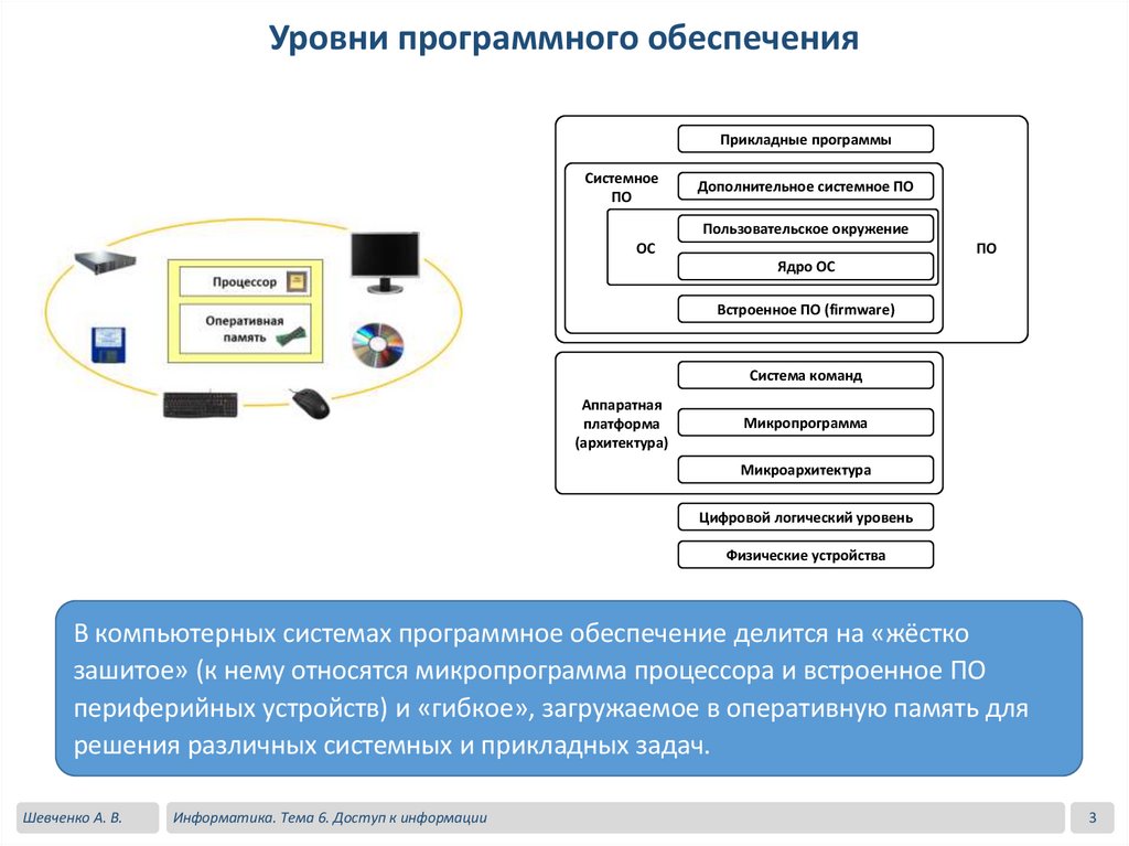 зашитое» (к нему относятся микропрограмма процессора и встроенное ПО