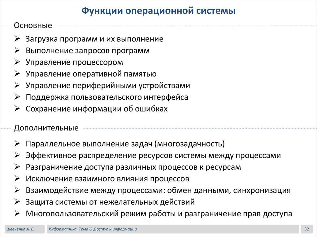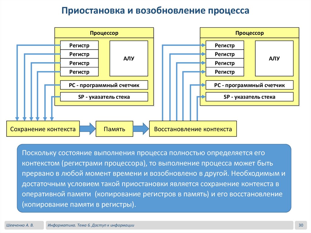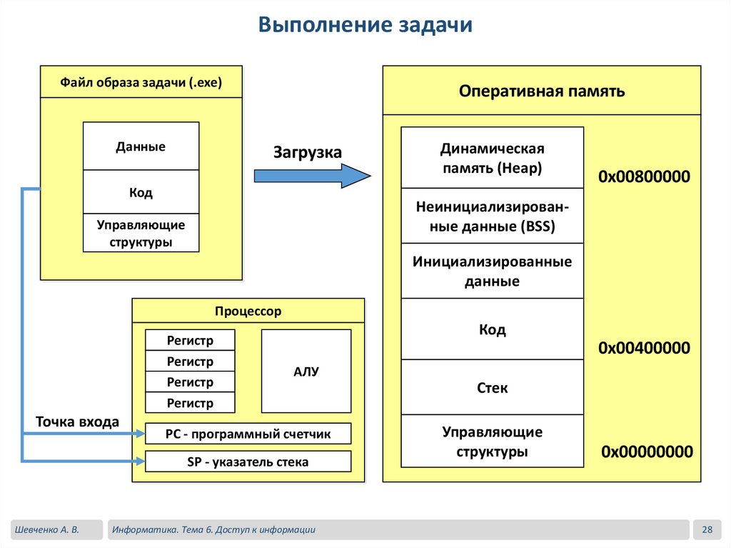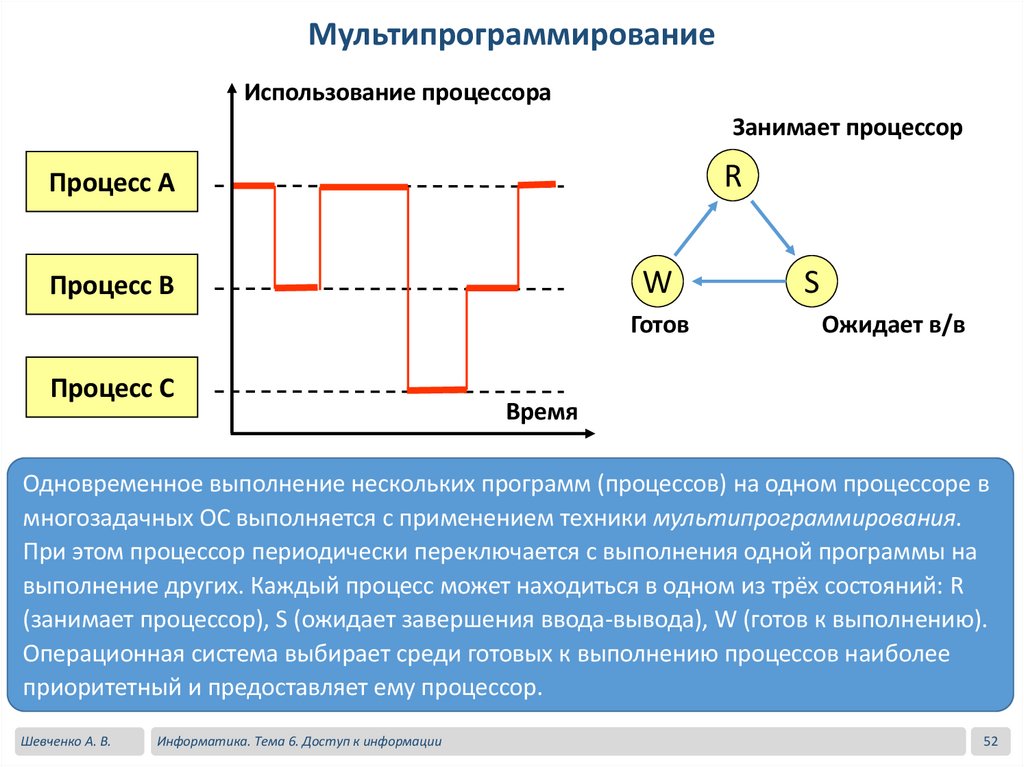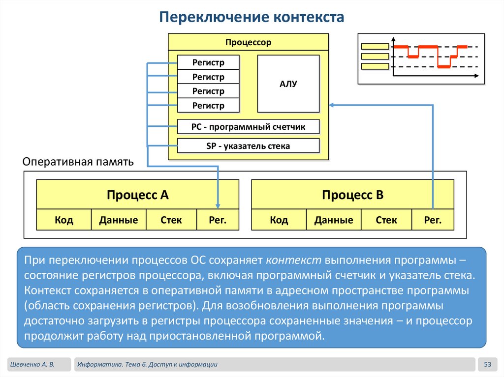 приоритеты программ и время, уже затраченное на их выполнение. Основная