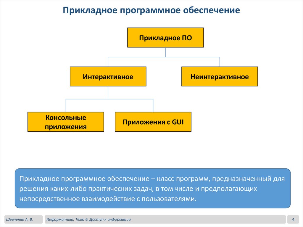 Прикладное программное обеспечение – класс программ, предназначенный для