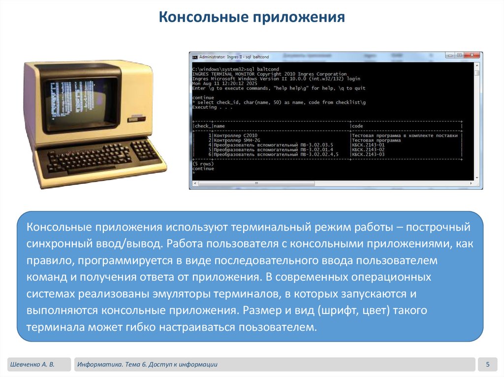 Консольные приложенияКонсольные приложения используют терминальный режим работы – построчный