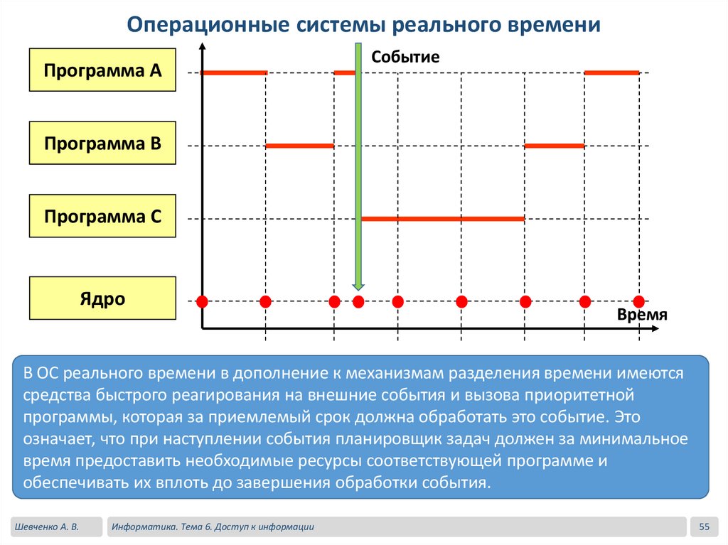 первых гарантируется требуемое время ответа на любое событие, во вторых