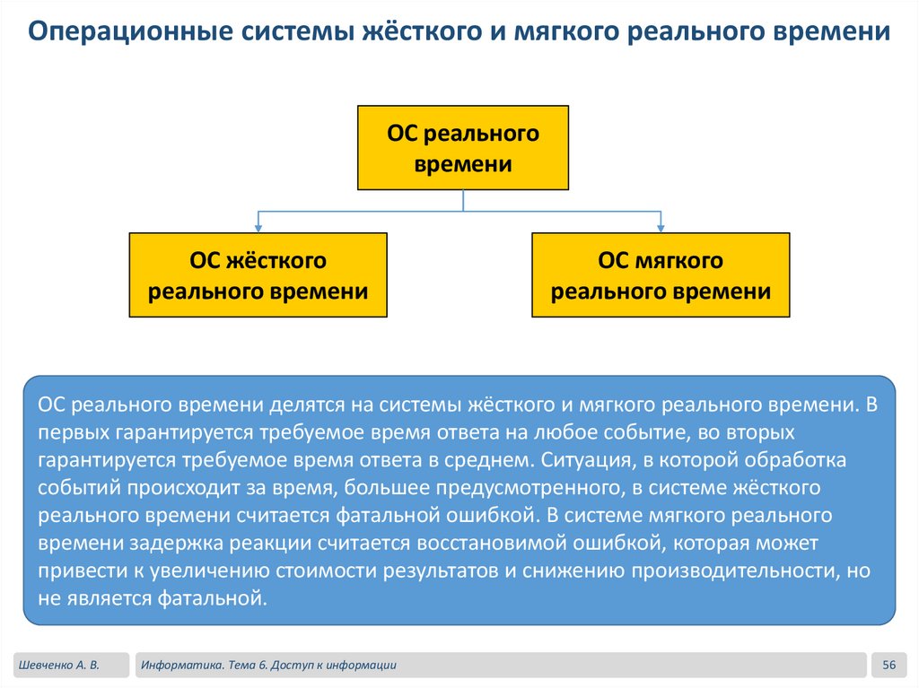 ОС реального времени делятся на системы жёсткого и мягкого реального времени. В