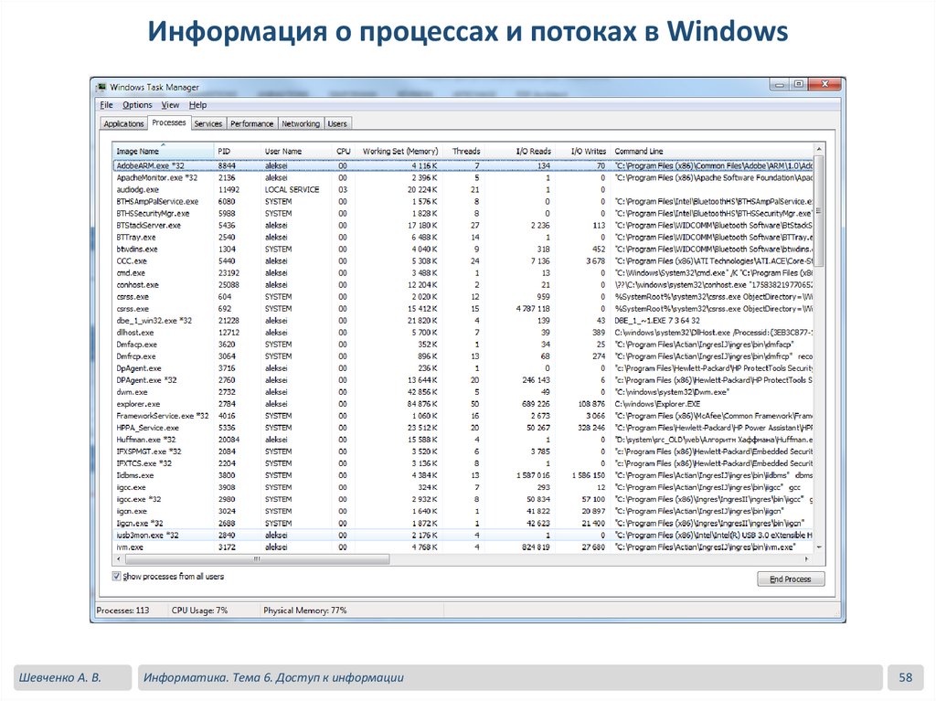 Информация о процессах и потоках в WindowsШевченко А. В.