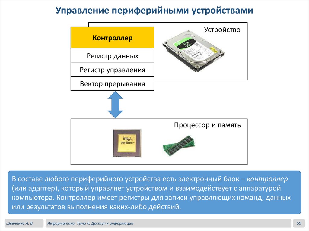 В составе любого периферийного устройства есть электронный блок – контроллер