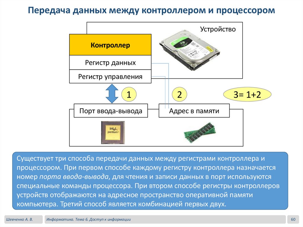 компьютера. Контроллер имеет регистры для записи управляющих команд, данных