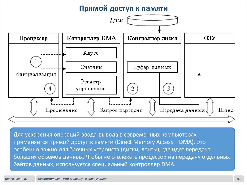 Прямой доступ к памятиДля ускорения операций ввода-вывода в современных компьютерах