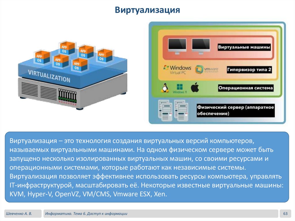 ВиртуализацияВиртуализация – это технология создания виртуальных версий компьютеров,