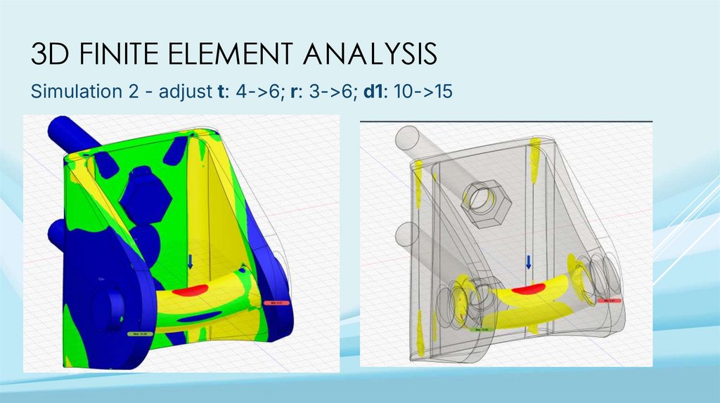3D FINITE ELEMENT ANALYSISSimulation 2 - adjust t: 4->6; r: 3->6; d1: 10->15
