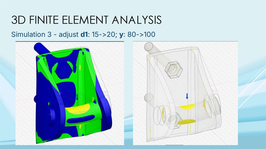 3D FINITE ELEMENT ANALYSISSimulation 3 - adjust d1: 15->20; y: 80->100