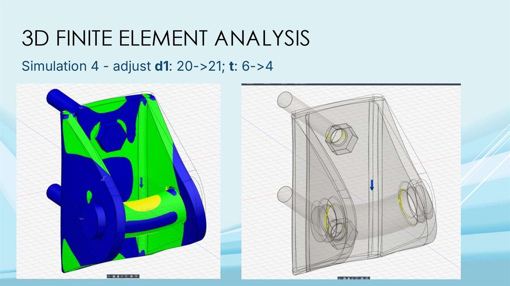 3D FINITE ELEMENT ANALYSISSimulation 4 - adjust d1: 20->21; t: 6->4