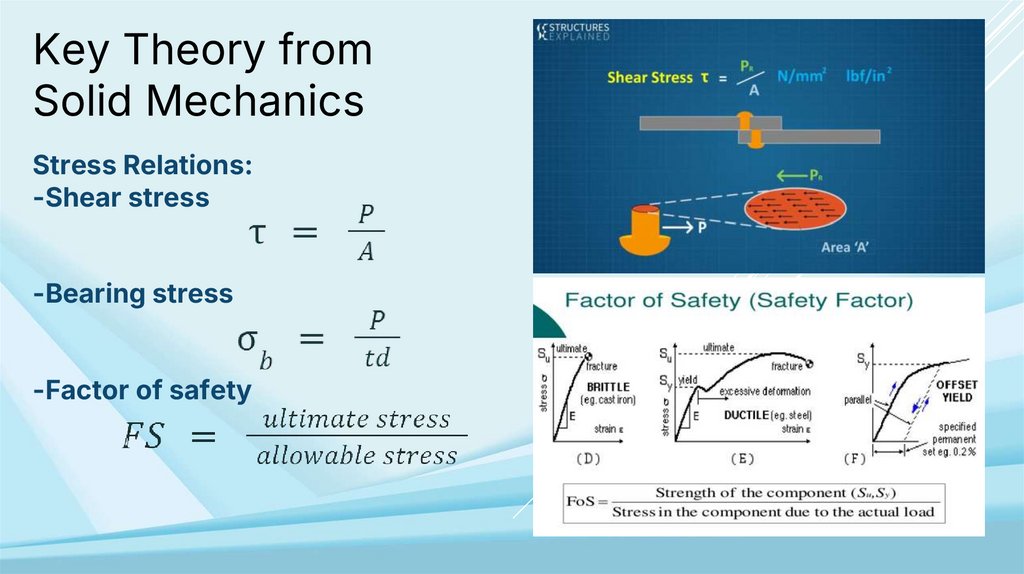 Shear stress • Bearing stress • Failure modes • Safety factor