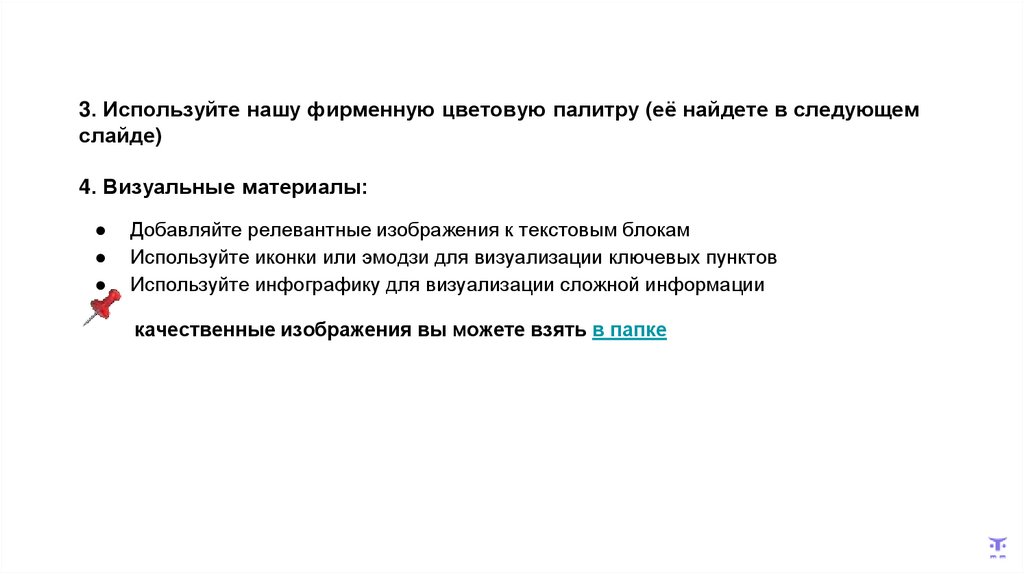 3. Используйте нашу фирменную цветовую палитру (её найдете в следующемслайде)
