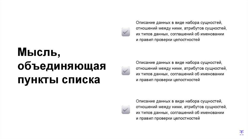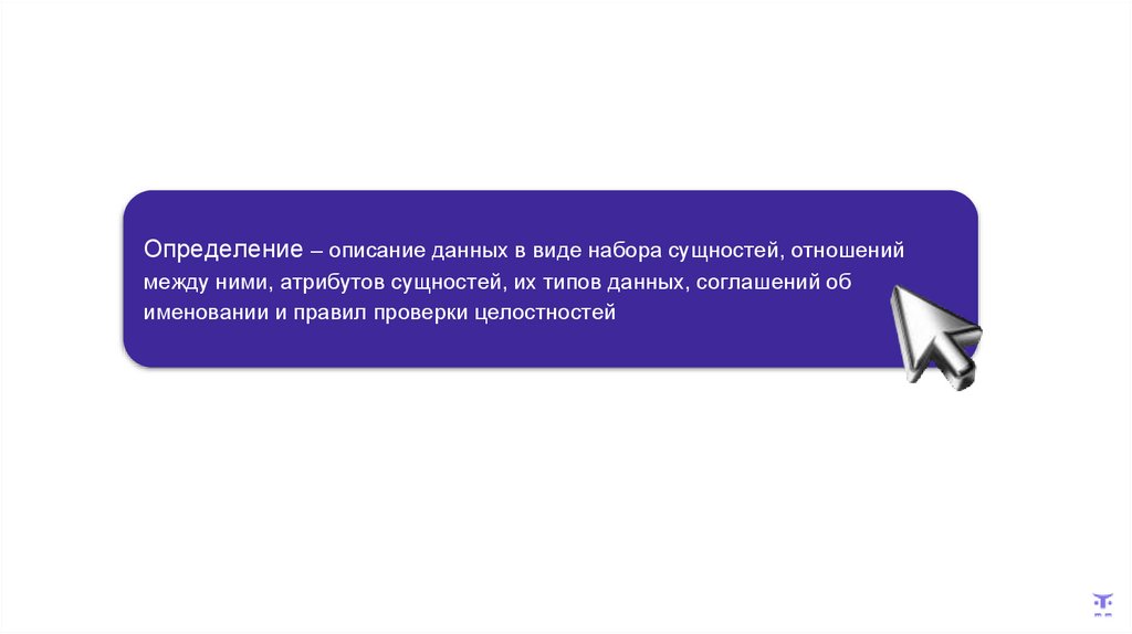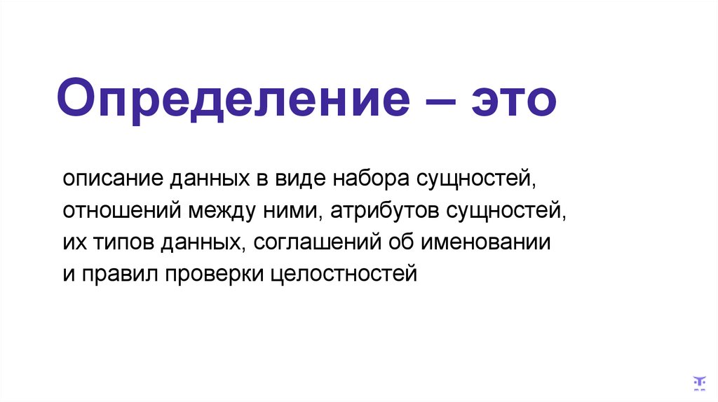 Определение – этоописание данных в виде набора сущностей,