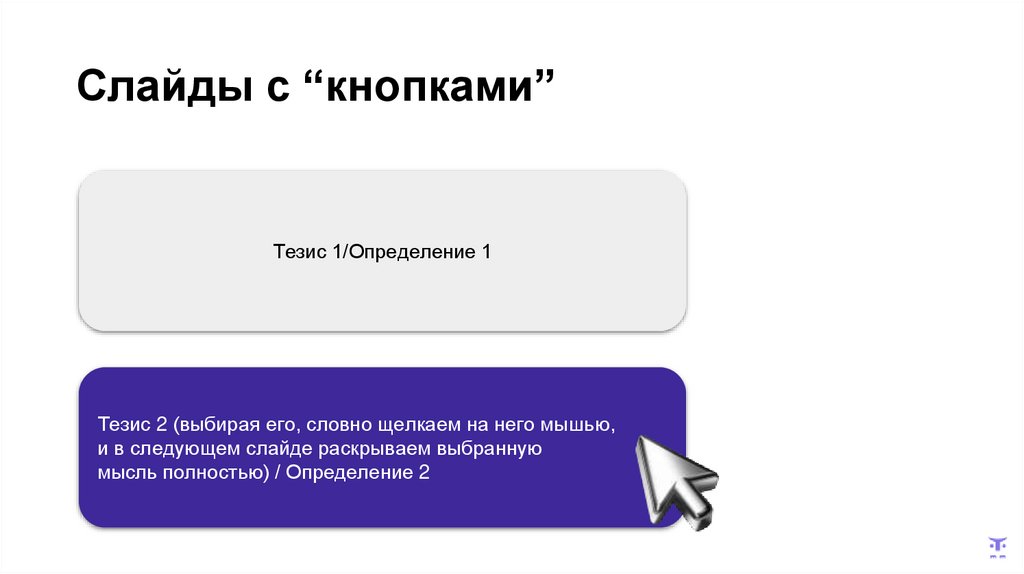 Слайды с “кнопками”Тезис 1/Определение 1