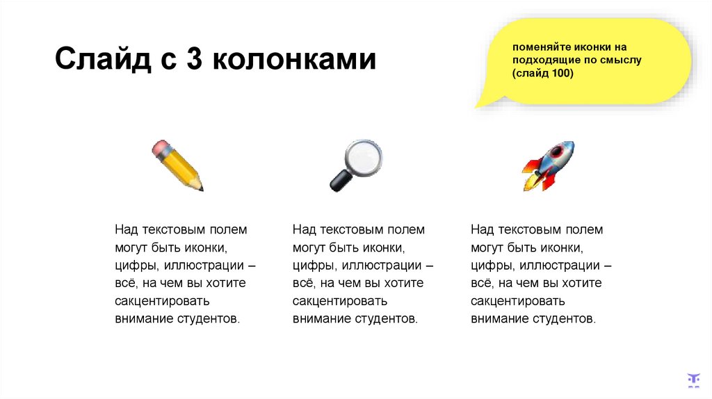 Используйте иконки или эмодзи для визуализации ключевых пунктов