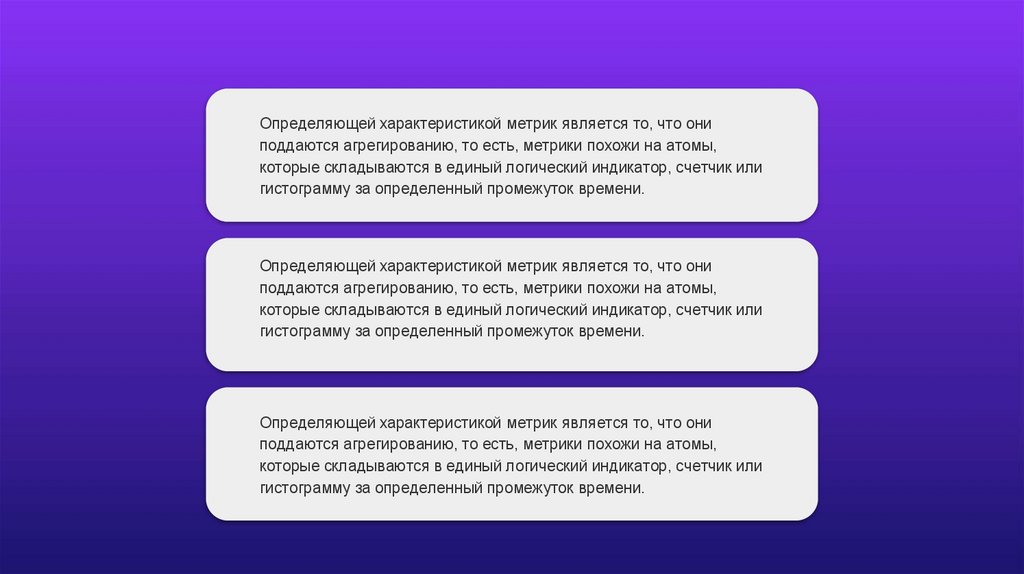 Определяющей характеристикой метрик является то, что ониподдаются агрегированию, то есть, метрики похожи на атомы,