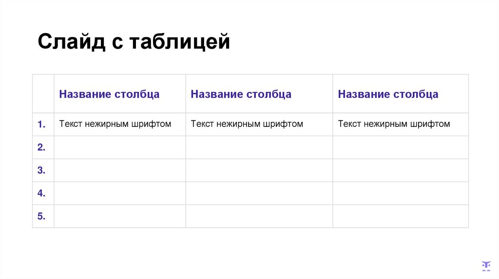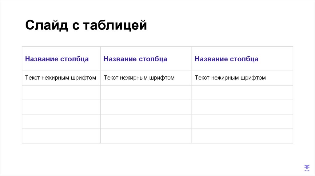 Слайд с таблицейНазвание столбца