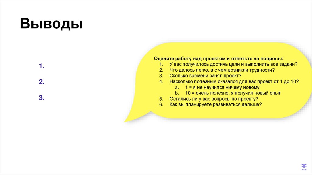 Оцените работу над проектом и ответьте на вопросы: