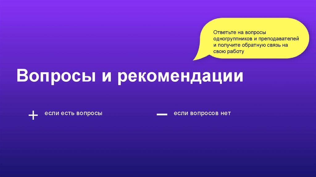 Ответьте на вопросыодногруппников и преподавателей