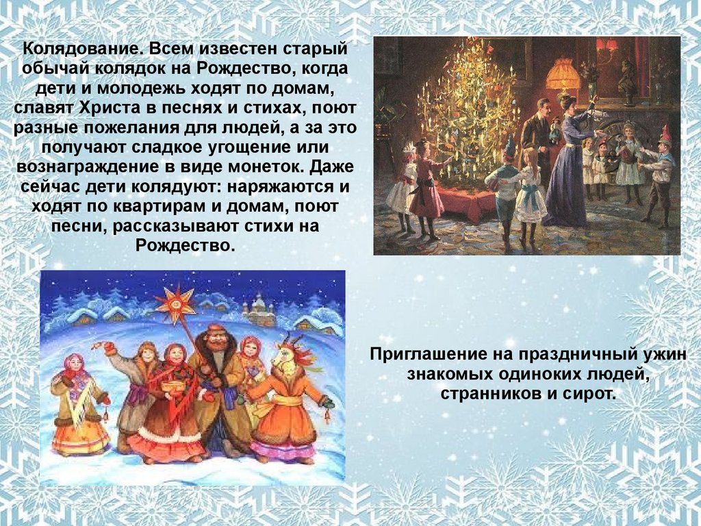 Колядование. Всем известен старыйобычай колядок на Рождество, когда