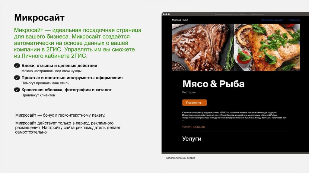 Микросайт — бонус к геоконтекстному пакету.Микросайт действует только в период рекламного