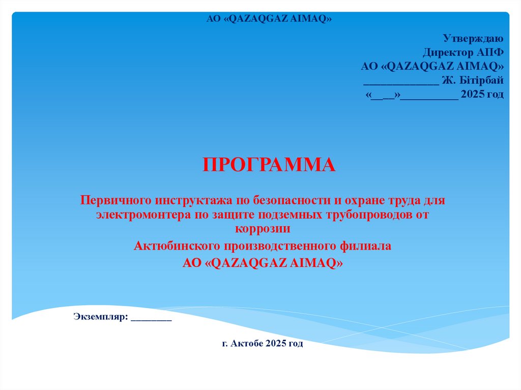 АО «QAZAQGAZ AIMAQ»Утверждаю
