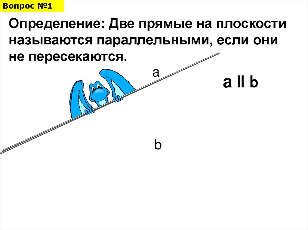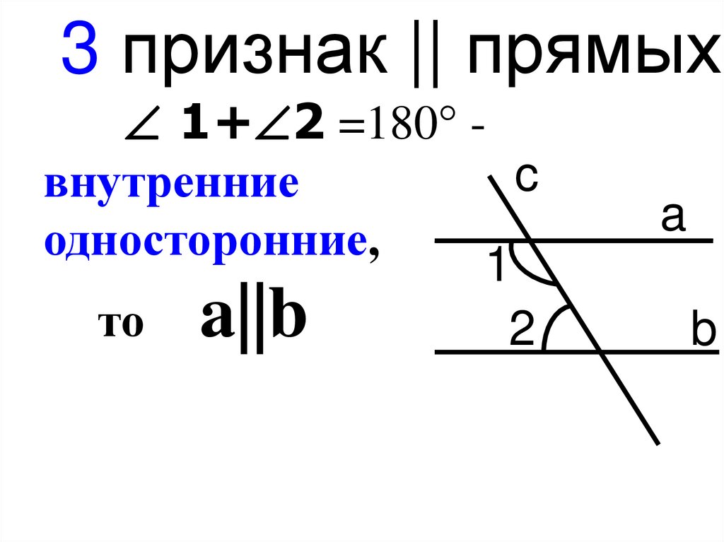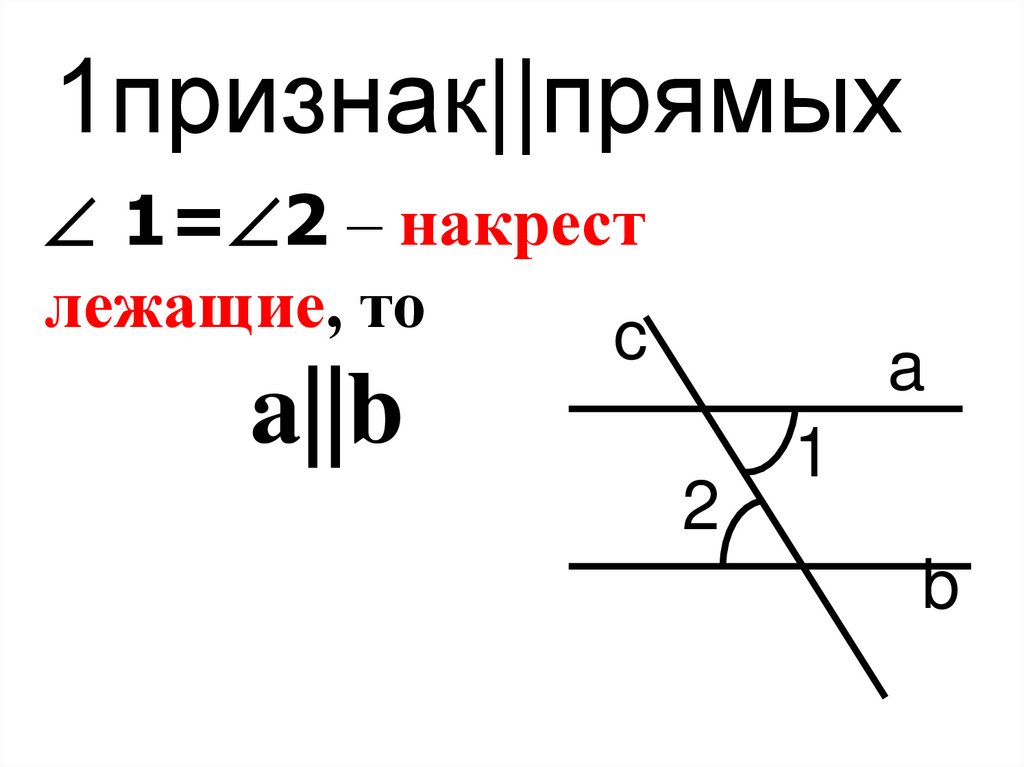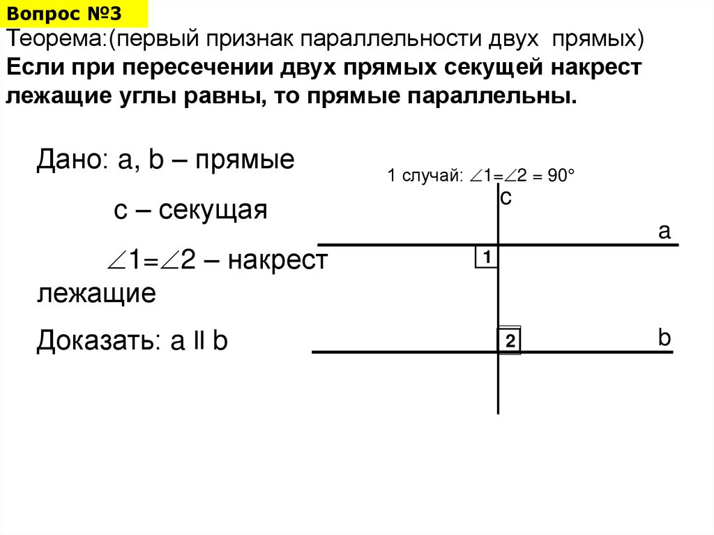 Вопрос №3Теорема:(первый признак параллельности двух прямых)