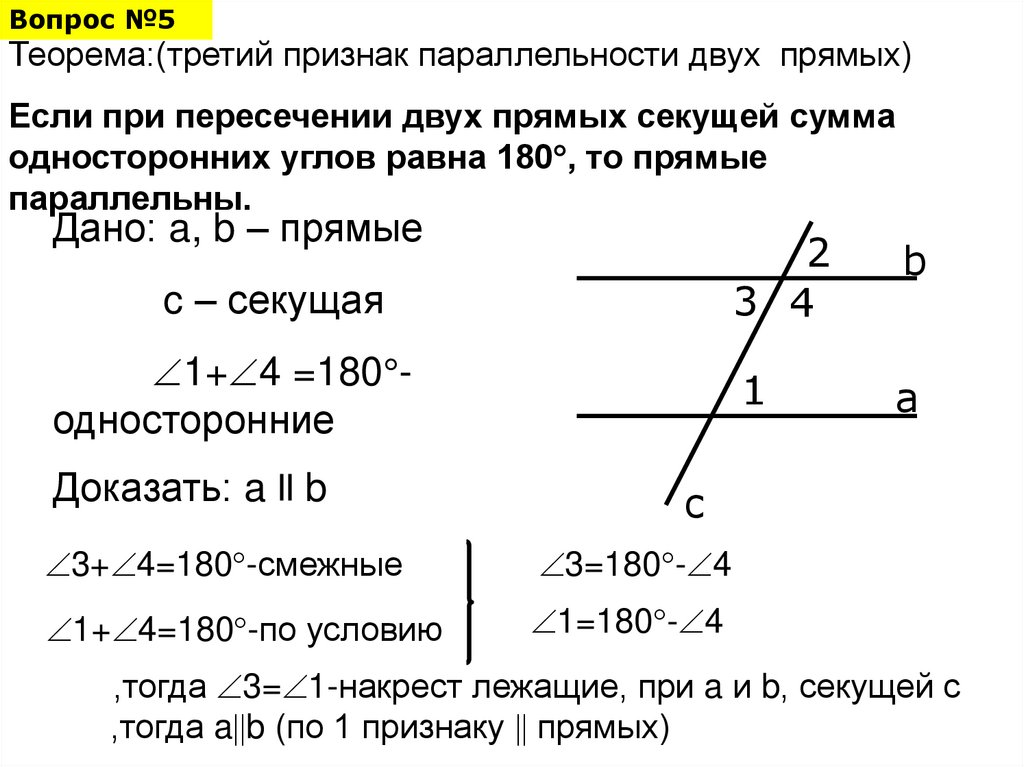 Вопрос №5Теорема:(третий признак параллельности двух прямых)